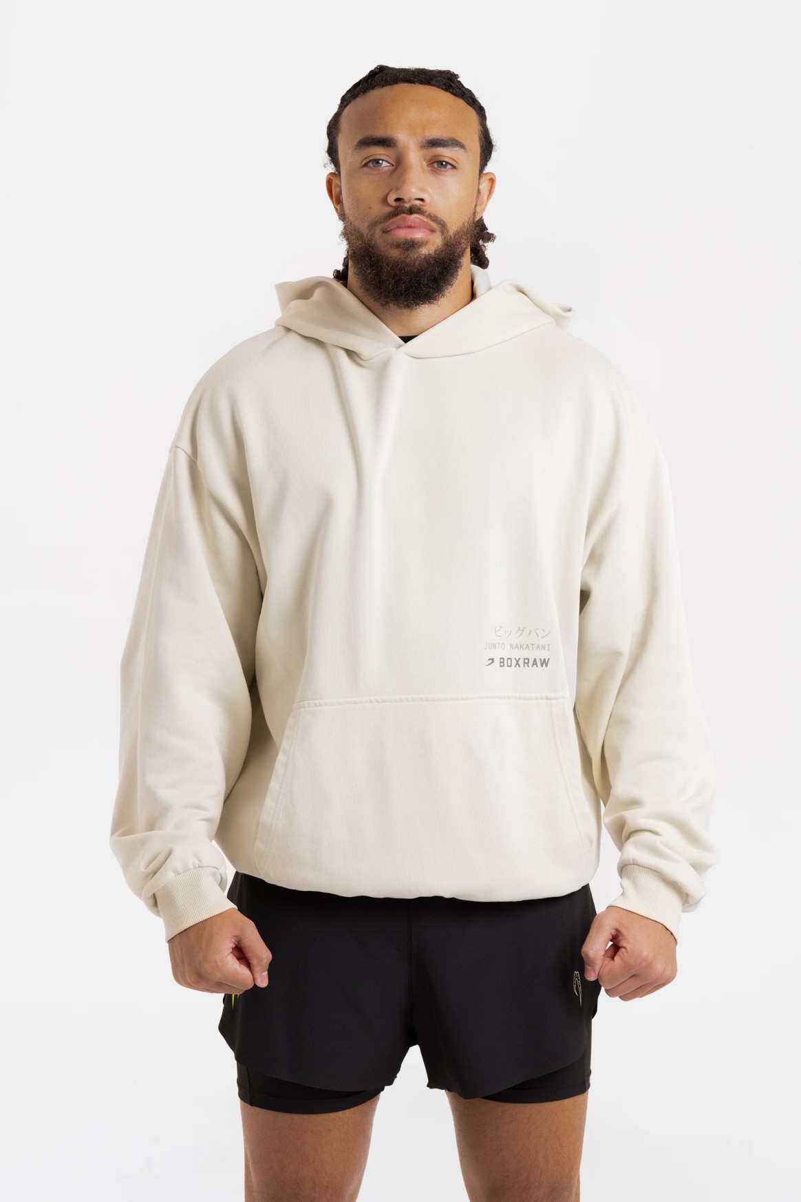 Оверсайз-худи Nakatani x Sparring Club оснащено фирменным потайным карманом на молнии для надёжного хранения. Завершено графикой SPARRING CLUB® и надписью «Big Bang», выполненной японской катаканой — в честь наследия Дзюнто Накатани.