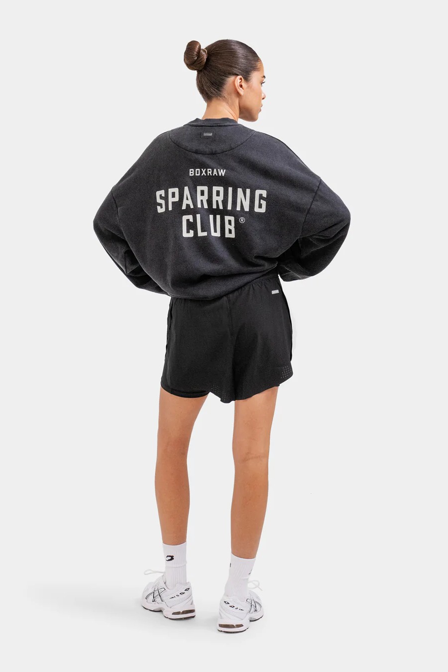 Свитшот создан, чтобы разогреть тело в минуты тишины до того, как прозвучит твоё имя. Ткань French Terry с винтаж эффектом из прочного дышащего хлопка, с оверсайз посадкой и мощным заявлением на спине: Sparring Club®, - что говорит за тебя, ты здесь ради битвы.