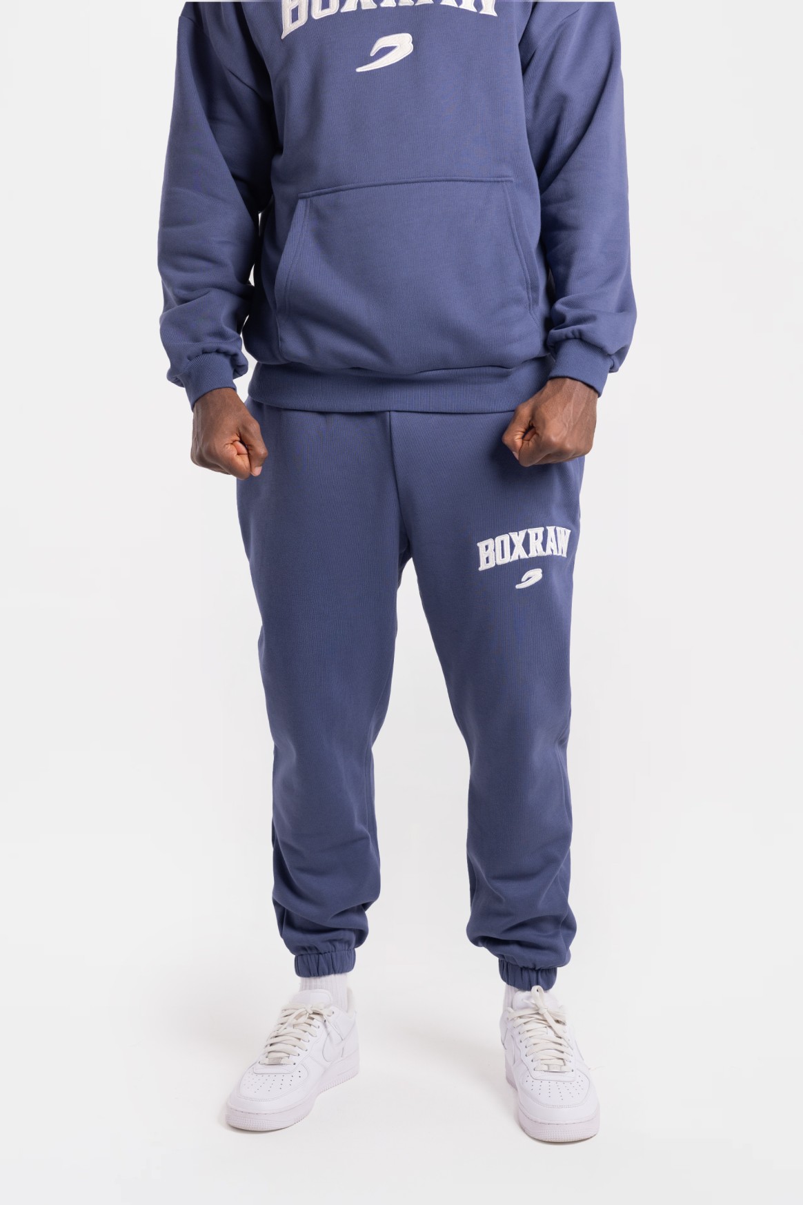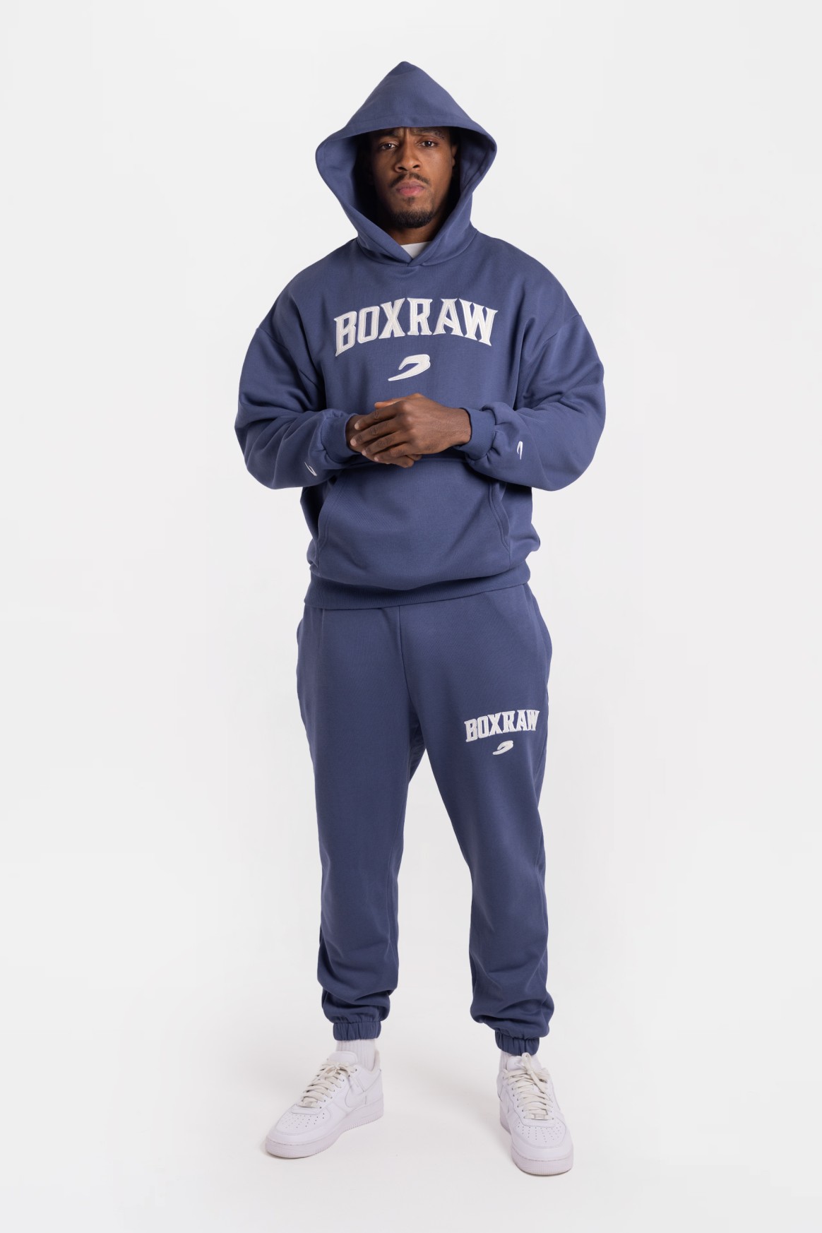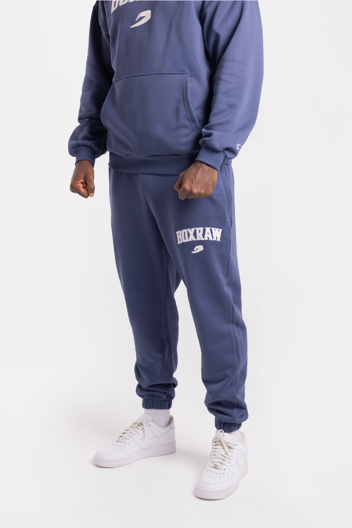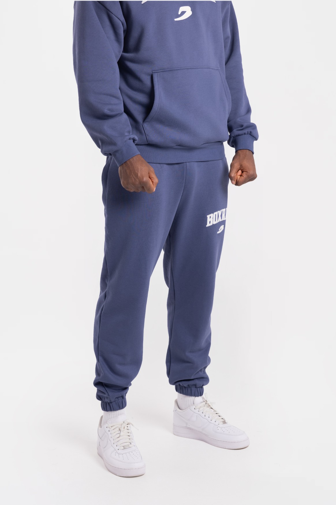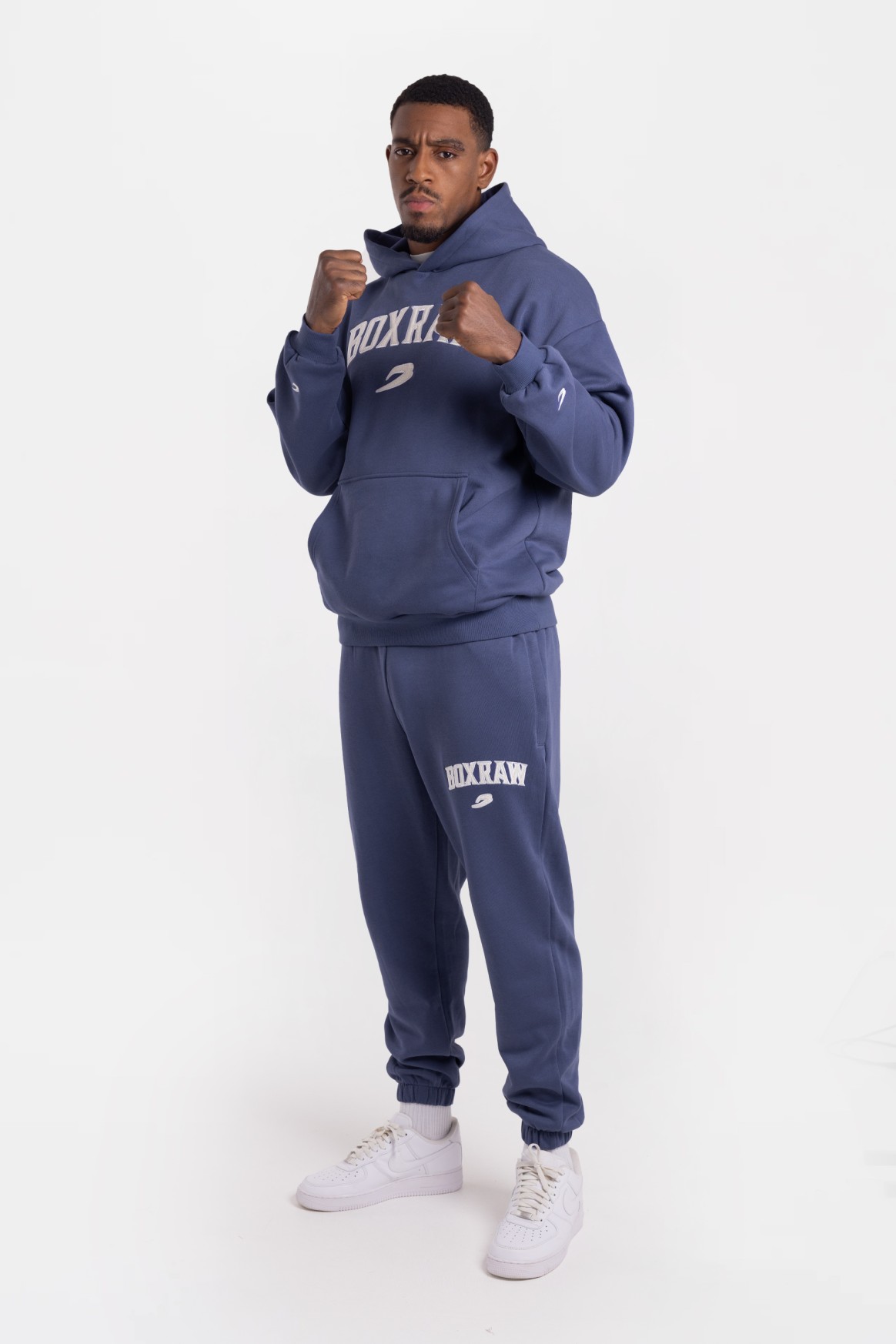 На фото в цвете морская волна и бордовый Эзра - профессиональный боксер в тяжелом весе ростом 188 см, размер одежды L