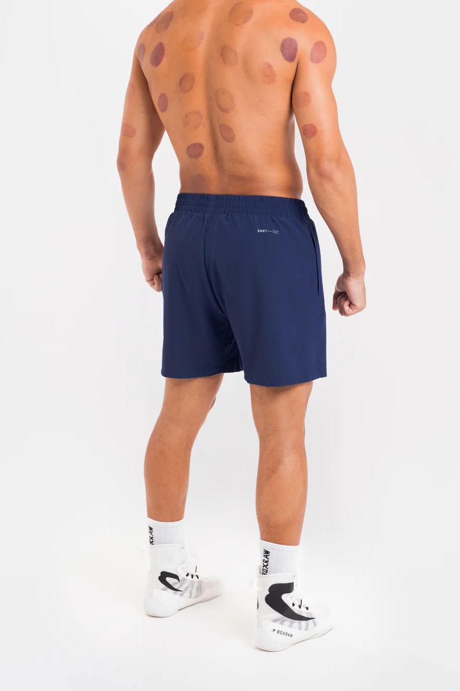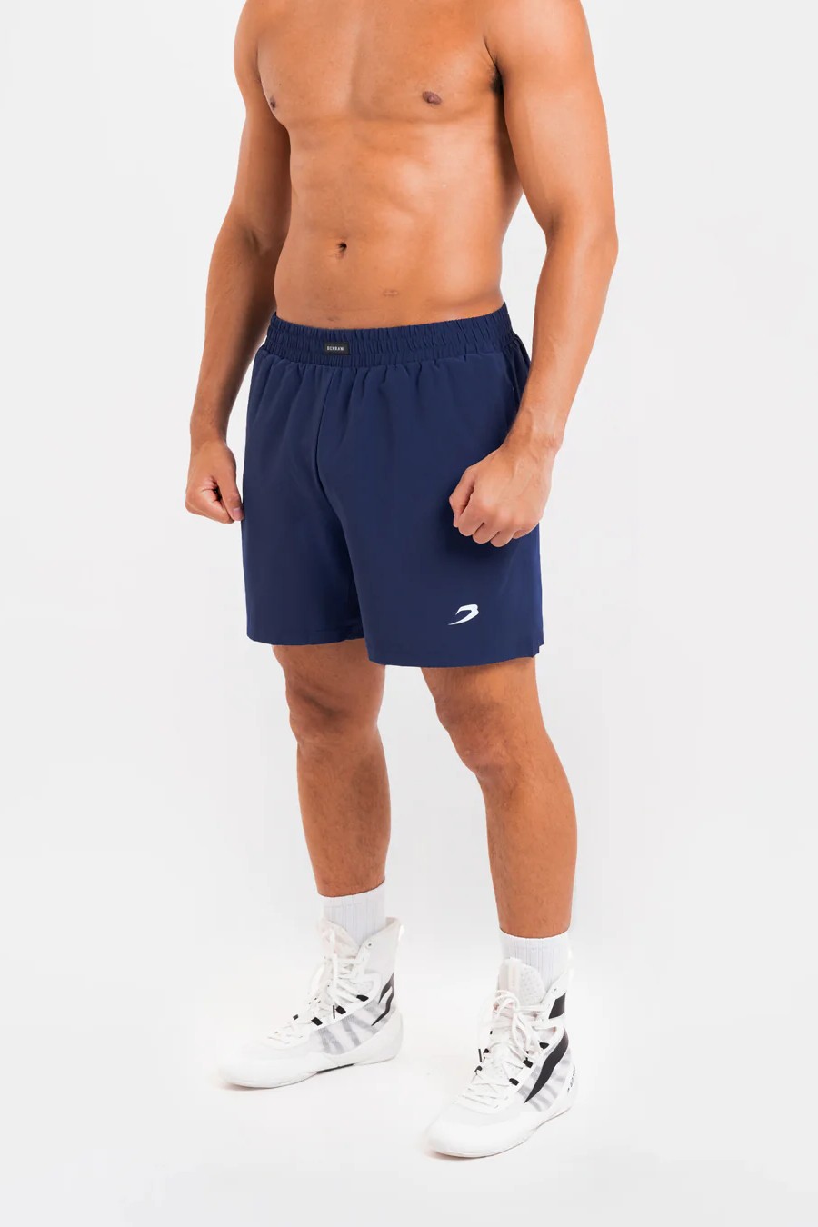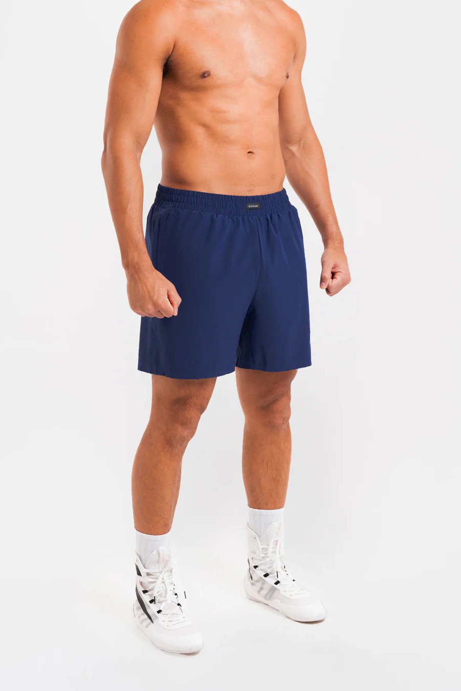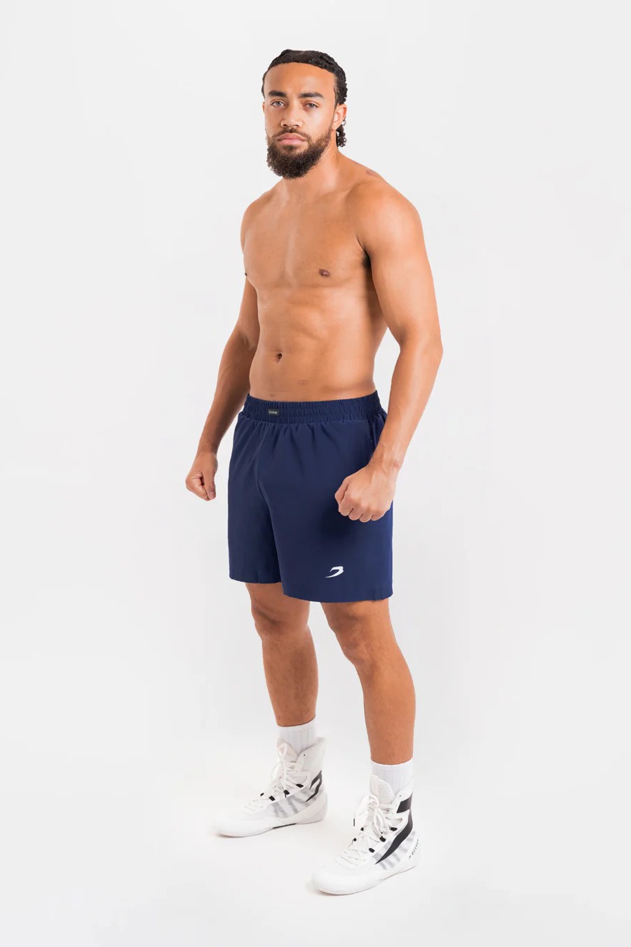 На фото в синем Си Джей - профессиональный боксер в полусреднем весе ростом 180 см. Размер одежды M.