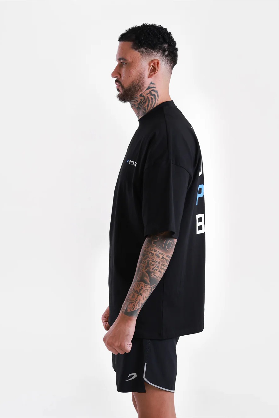 Оверсайз футболка WE DON'T PLAY BOXING® из эластичного хлопка воплотила в себе совершенный баланс дышащей ткани, свободы движения и защиты от излишней влаги. Она позволяет вам чувствовать себя комфортно в каждом раунде, лидируя из раза в раз. Наш фирменный слоган WE DON'T PLAY BOXING® вышит во всю спину, напоминая миру об очевидном для нашего сообщества факте: можно играть в футбол, баскетбол, бейсбол, но не в бокс. Бокс – это жизнь!