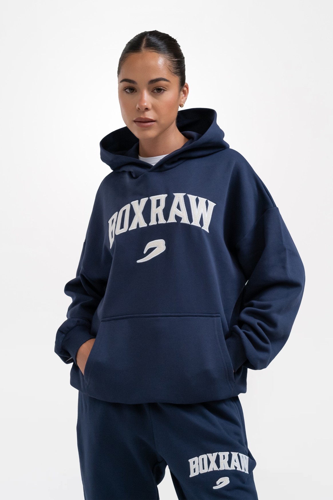 Вдохновленная эстетикой классического бокса, толстовка East Street Hoodie в своем дизайне отдает дань корням. Она выполнена в свободном фасоне из прочной хлопковой смеси, и будет служить вам долгие годы, не теряя в качестве. Грудь украшена аппликацией логотипа Boxraw, на спине расположена традиционная для бренда небольшая металлическая пластина. А если поднять руки в стойке, то вы увидите перевернутые логотипы Boxraw. Для хранения ценных вещей мы добавили наш фирменный карман на молнии внутри кармана-кенгуру.