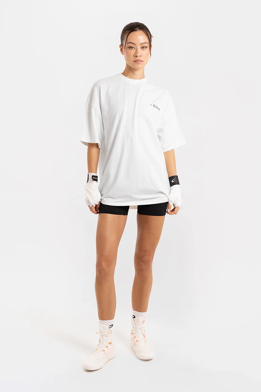Оверсайз футболка WE DON'T PLAY BOXING® из эластичного хлопка воплотила в себе совершенный баланс дышащей ткани, свободы движения и защиты от излишней влаги. Она позволяет вам чувствовать себя комфортно в каждом раунде, лидируя из раза в раз. Наш фирменный слоган WE DON'T PLAY BOXING® вышит во всю спину, напоминая миру об очевидном для нашего сообщества факте: можно играть в футбол, баскетбол, бейсбол, но не в бокс. Бокс – это жизнь!