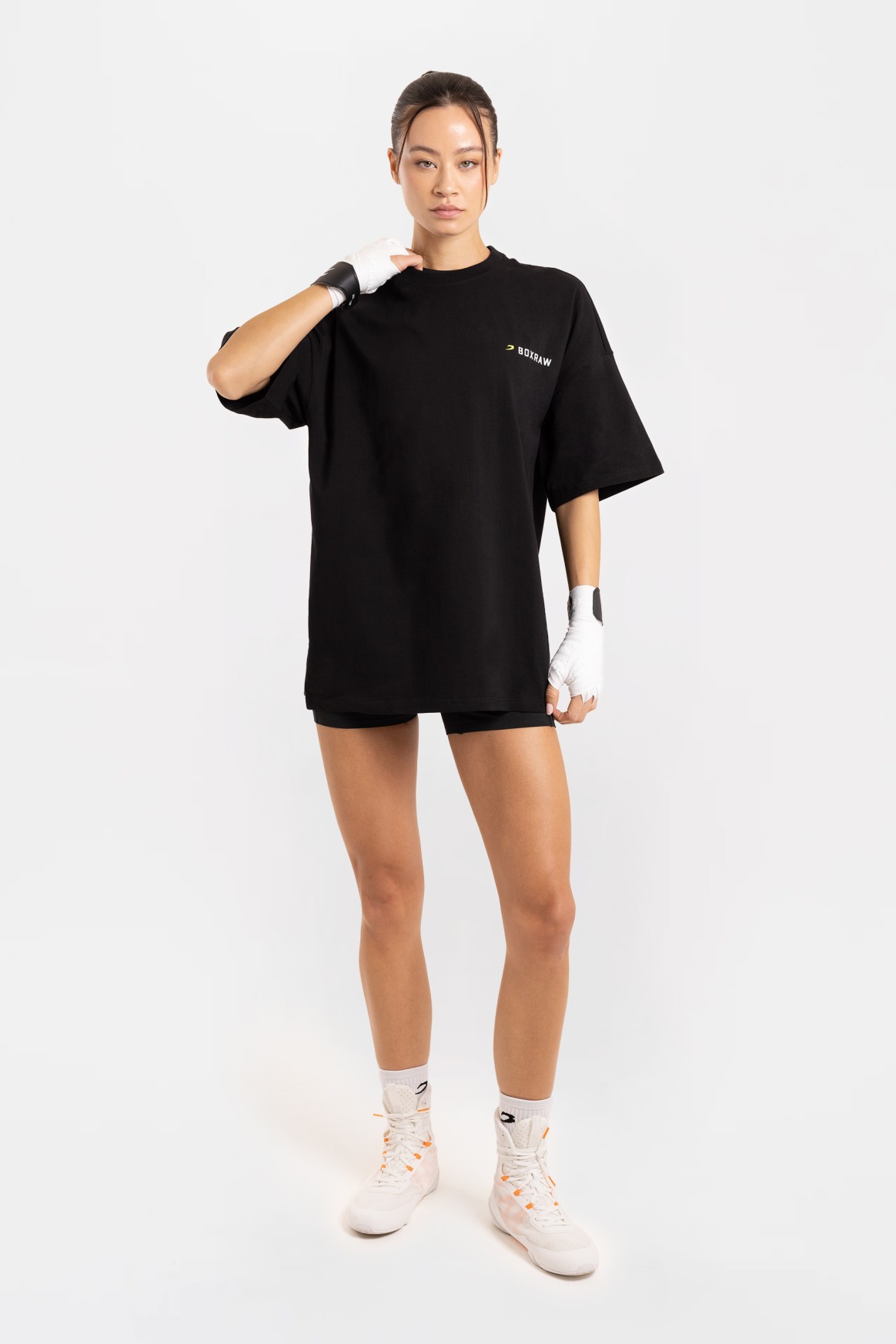 Оверсайз футболка WE DON'T PLAY BOXING® из эластичного хлопка воплотила в себе совершенный баланс дышащей ткани, свободы движения  и защиты от излишней влаги. Она позволяет вам чувствовать себя комфортно в каждом раунде, лидируя из раза в раз. Наш фирменный слоган WE DON'T PLAY BOXING® вышит во всю спину, напоминая миру об очевидном для нашего сообщества факте: можно играть в футбол, баскетбол, бейсбол, но не в бокс. Бокс – это жизнь!