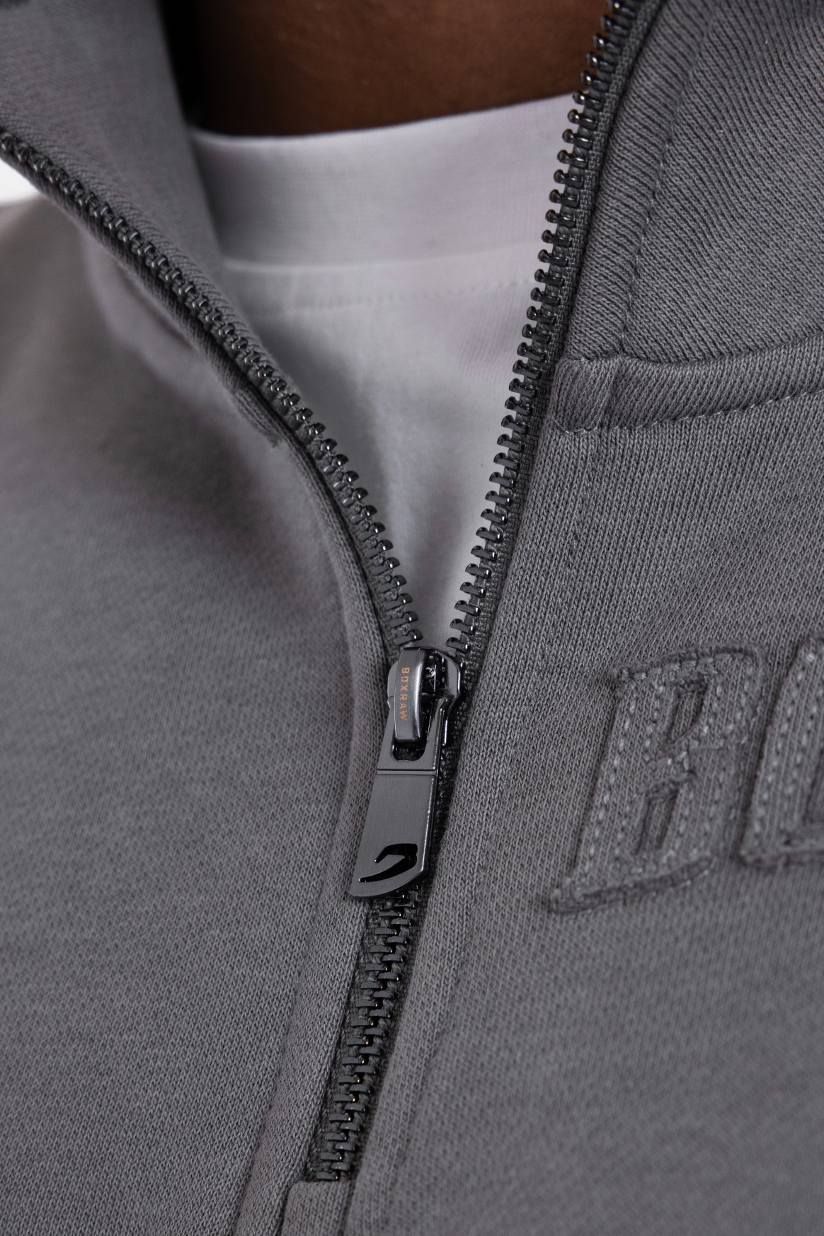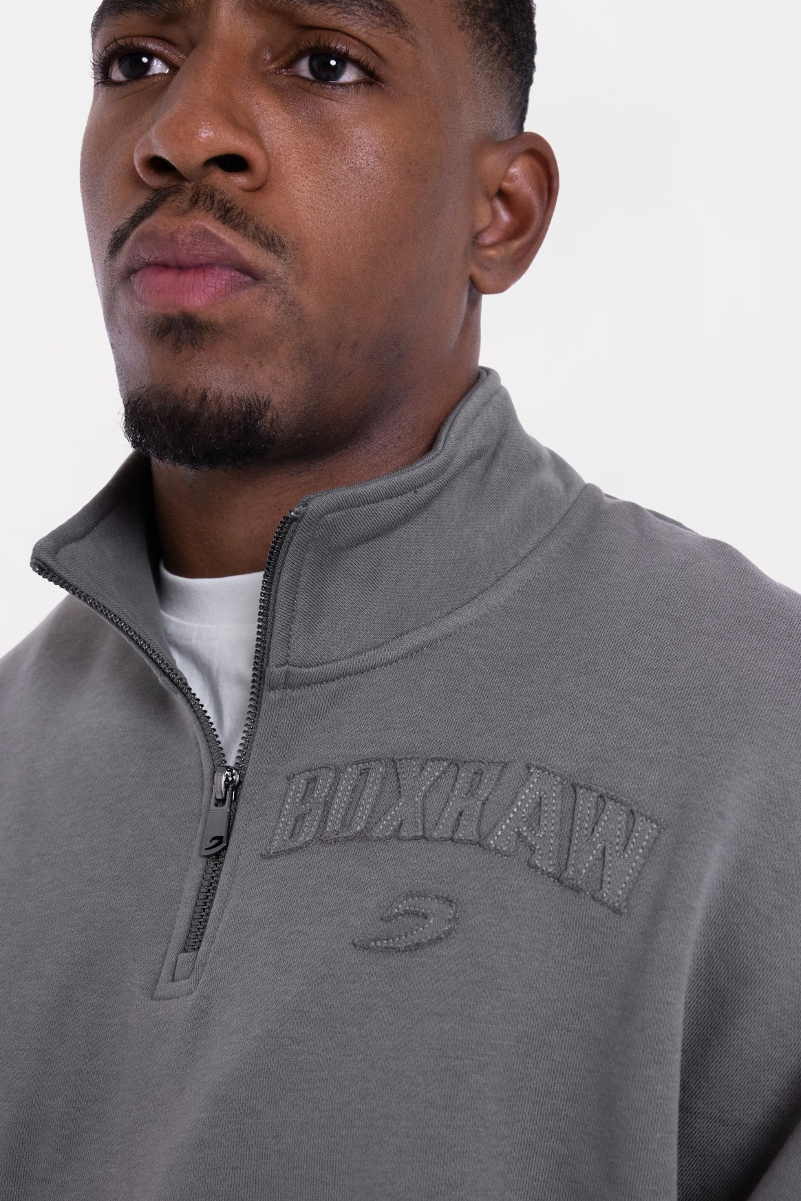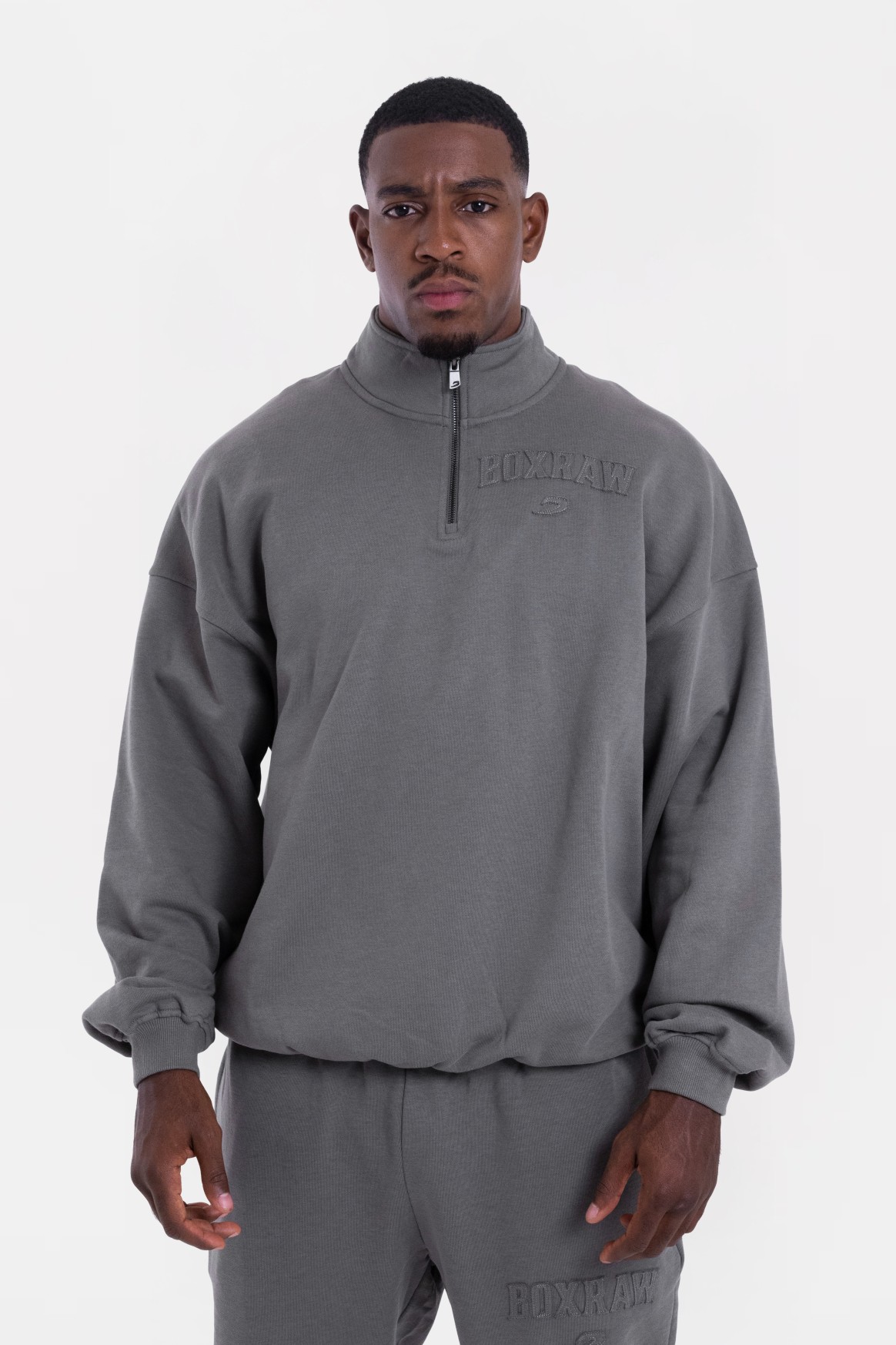 Он сделан из легкого и прочного хлопкового материала с мягкой флисовой подкладкой. Модель с молнией на четверть длины обеспечивает удобство и свободу движений. На груди есть логотип BOXRAW.