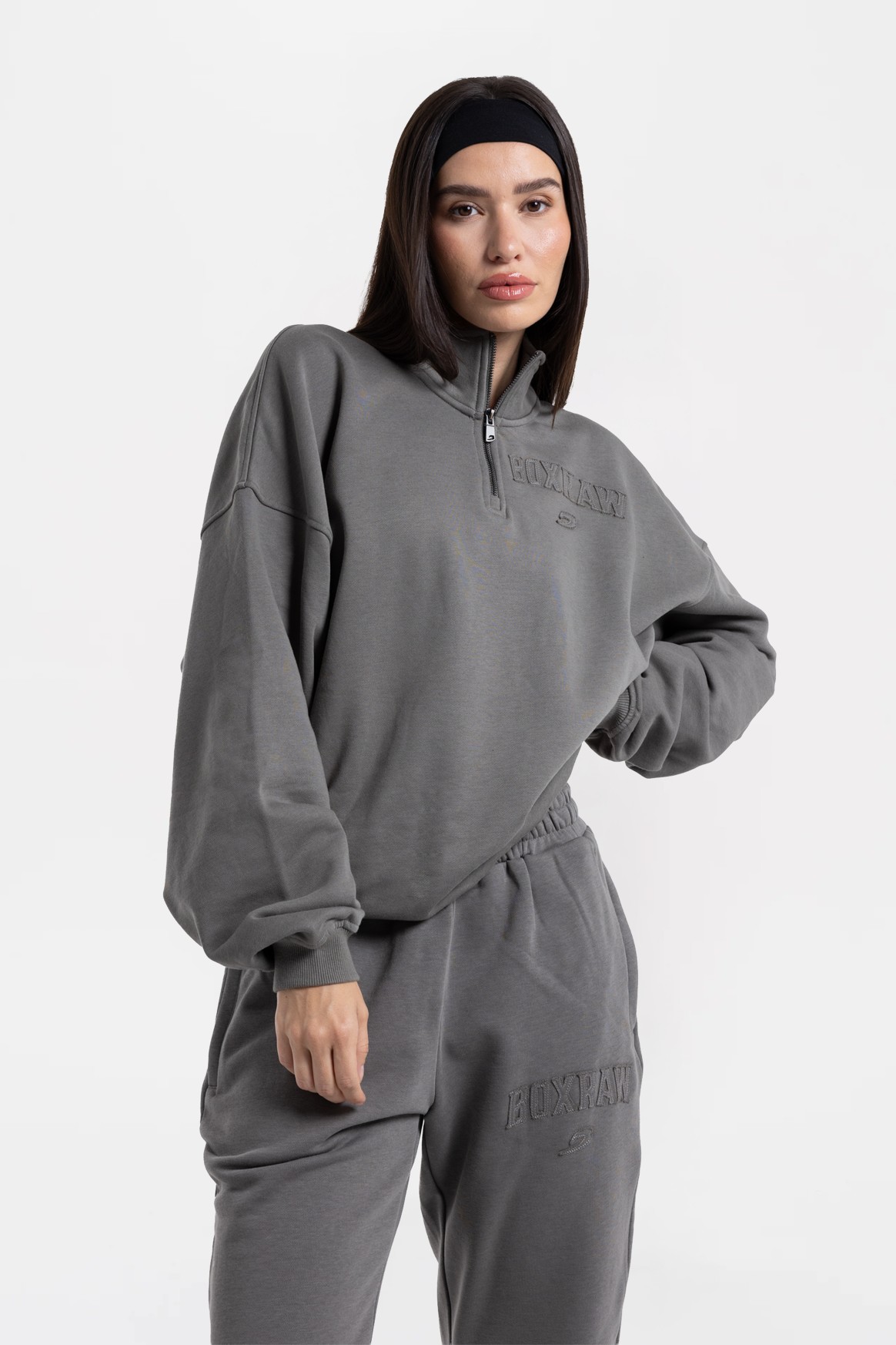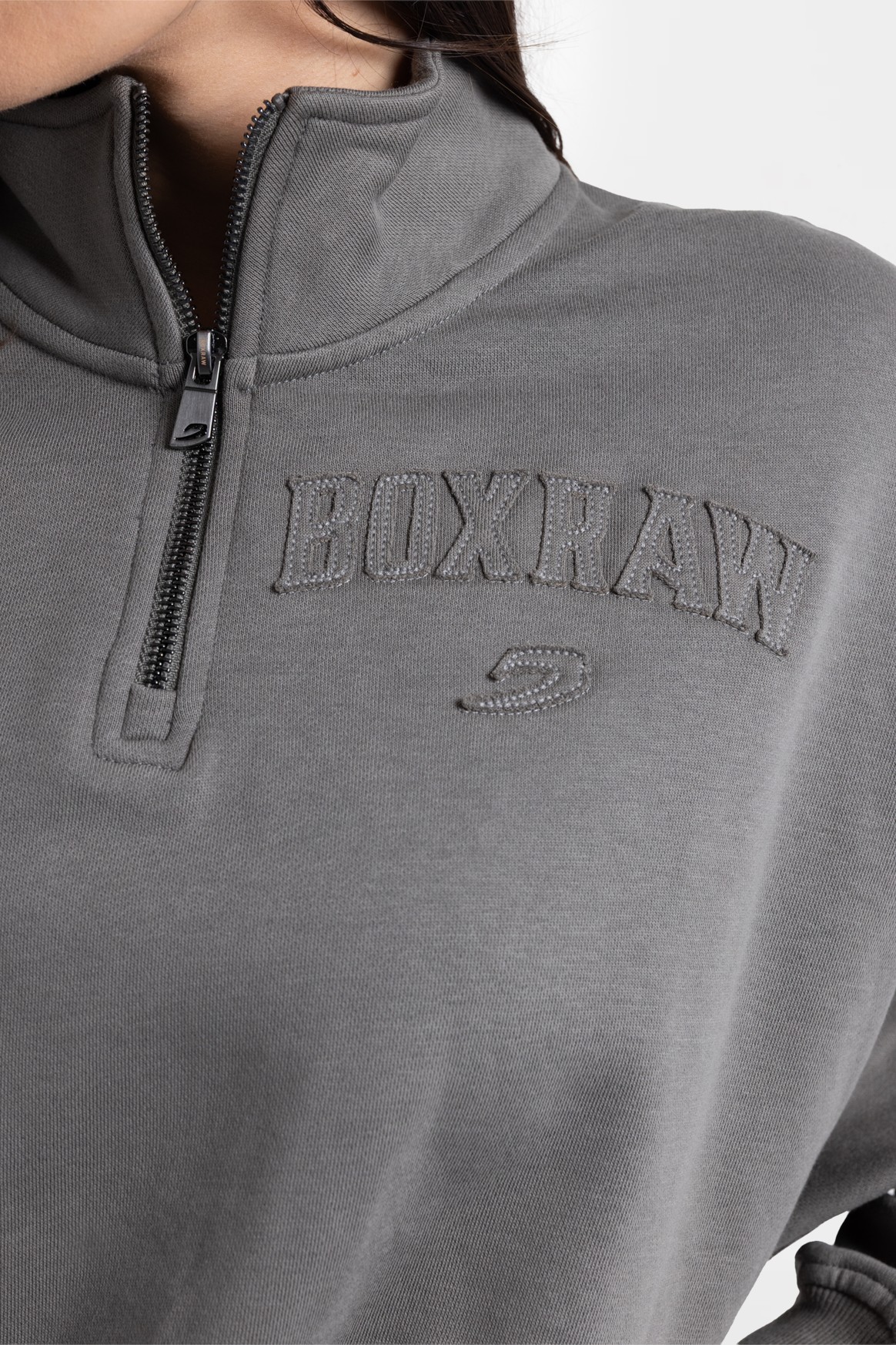Он сделан из легкого и прочного хлопкового материала с мягкой флисовой подкладкой. Модель с молнией на четверть длины обеспечивает удобство и свободу движений. На груди есть логотип BOXRAW.