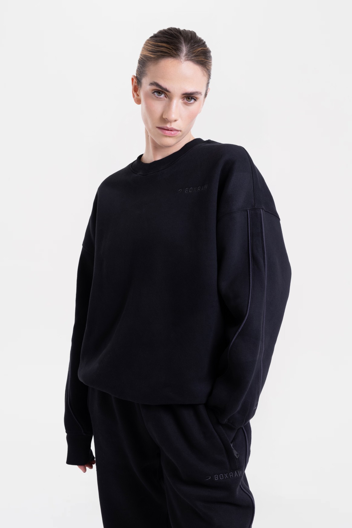 Комфорт для дней отдыха в новом формате. Свитшот выполнен из невероятно мягкого материала и имеет свободный крой для максимального удобства. Эластичные манжеты и пояс сохраняют тепло, а вышитый логотип BOXRAW и контрастные линии на рукавах придают стильный акцент современной классике.