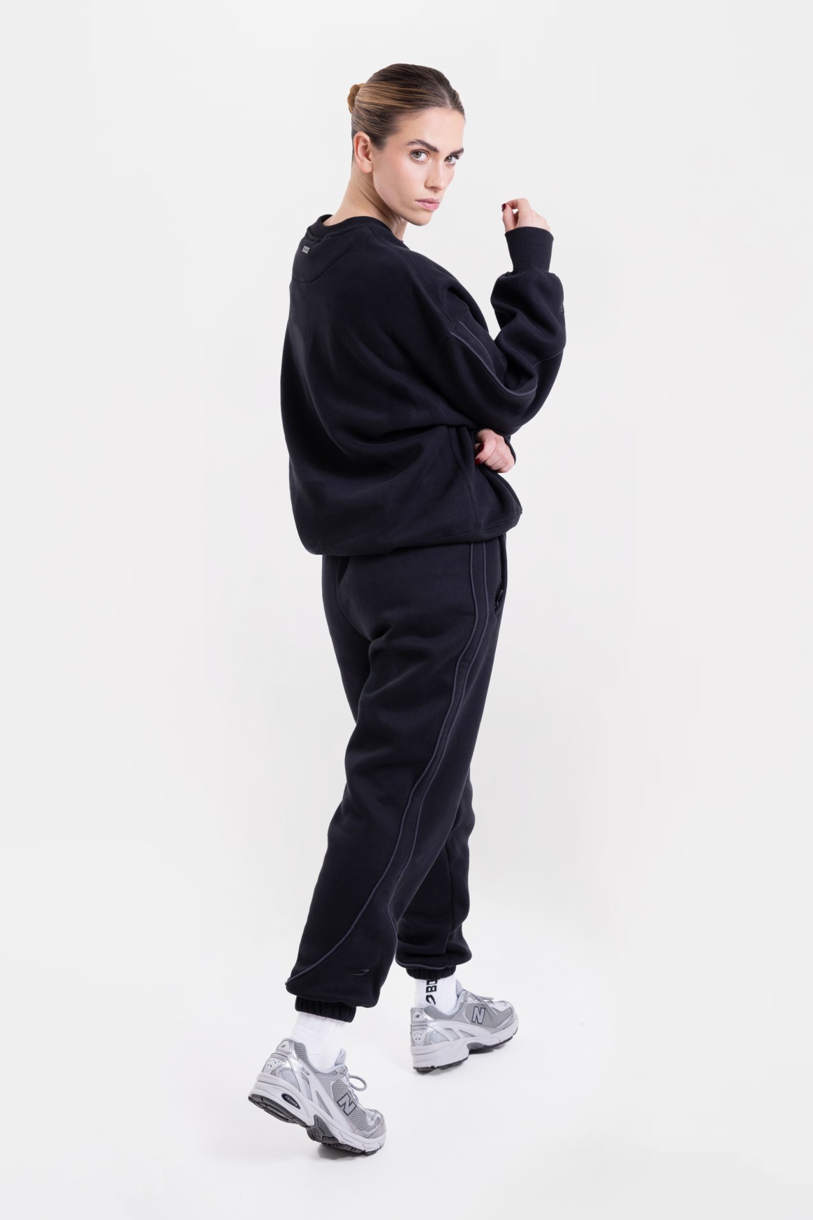 Модель в черном цвете ростом 170 см и носит размер S.