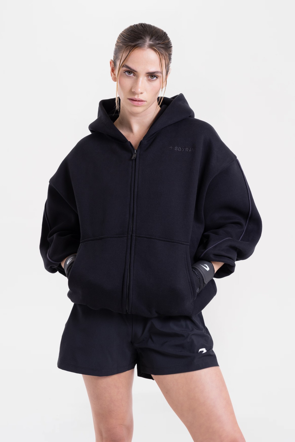 Идеальный комфорт для дней отдыха. Этот уютный Зип-худи с просторным кроем создан из мягкого премиального материала, обеспечивающего тепло и удобство. В его дизайне предусмотрены запатентованные карманы, чтобы ваши вещи всегда были под рукой. Завершают образ вышитый логотип BOXRAW и контрастные линии на рукавах, придающие стильный акцент этой современной классике.