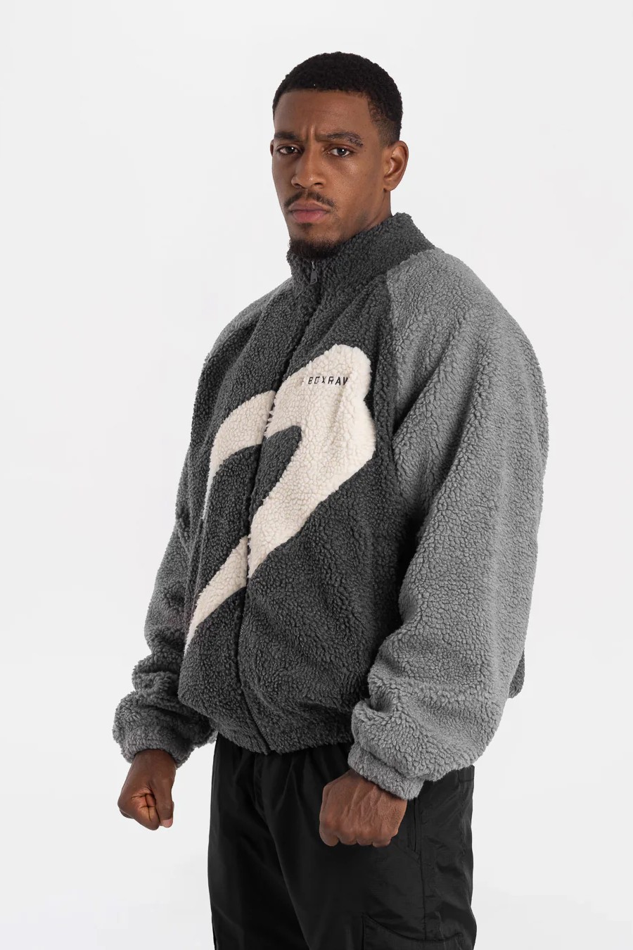На фото в черно/сером цвете Эзра - профессиональный боксер в тяжелом весе ростом 188 см, размер одежды L.