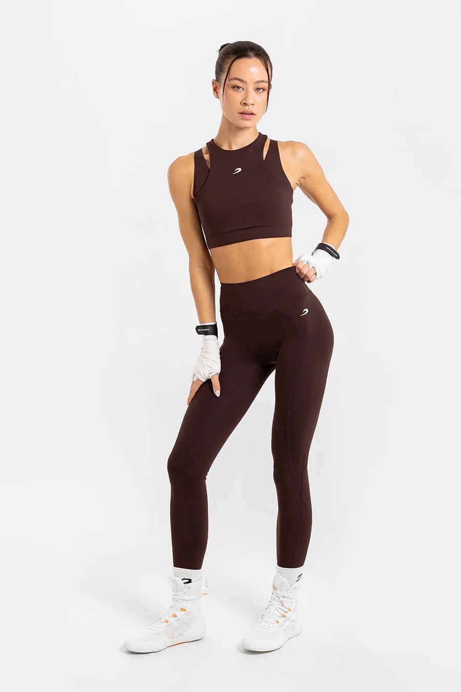 Изготовлены из ультрамягкого, лёгкого трикотажа с плотной, но эластичной компрессией, материал не просвечивается при приседаниях. Леггинсы Jackie выполнены с изогнутым поясом и "анатомическими" швами, подчёркивающими форму ягодиц, не ограничивая движений.